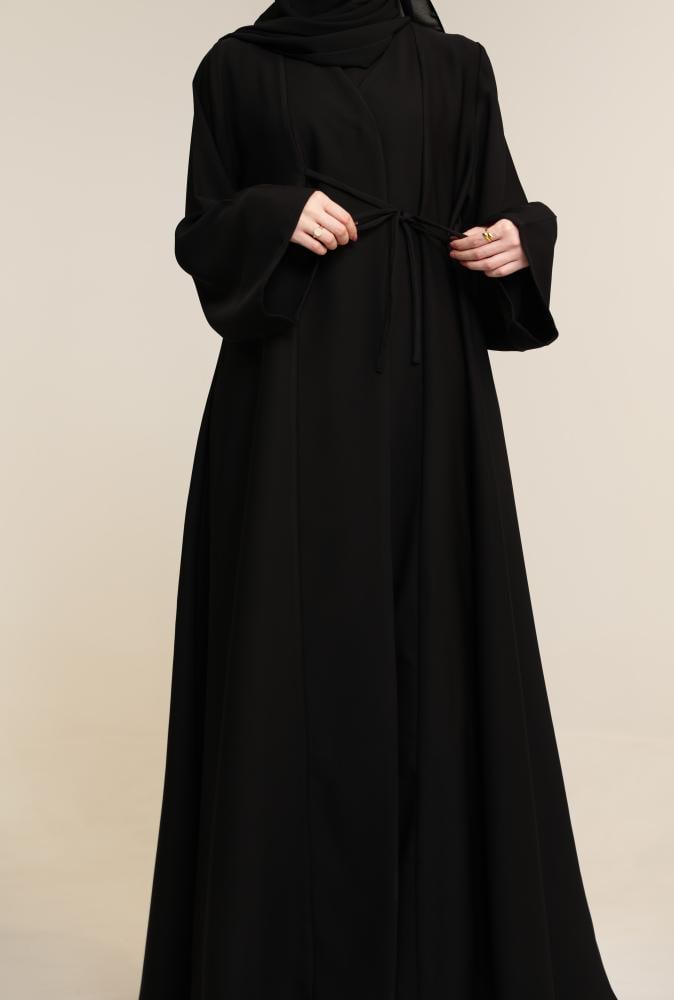 عباية سوداء بقماش كريب صيفي خفيف وناعم وسواد ممتاز